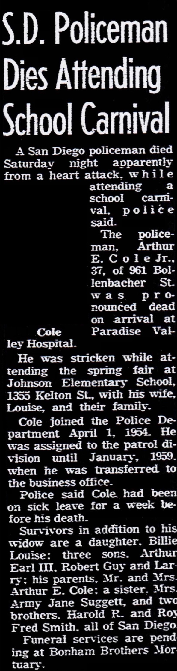 Basic information is provided as a courtesy and is obtained from a variety of sources including public data, museum files and or other mediums. While the San Diego Police Historical Association strives for accuracy, there can be issues beyond our control which renders us unable to attest to the veracity of what is presented. More specific information may be available if research is conducted. Research is done at a cost of $50 per hour with no assurances of the outcome. For additional info please contact us.