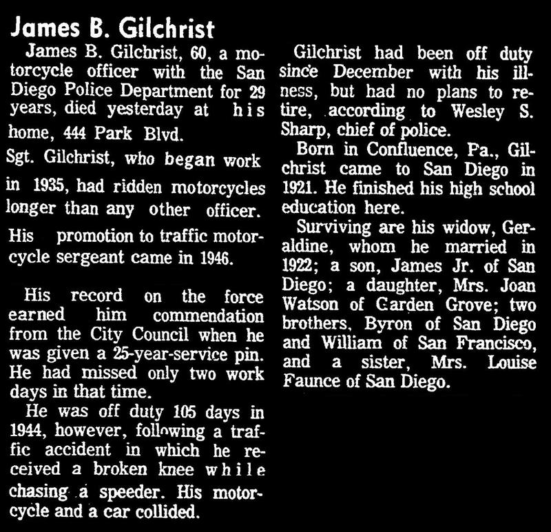 MOTORCYCLE SERGEANT JAMES B. GILCHRIST