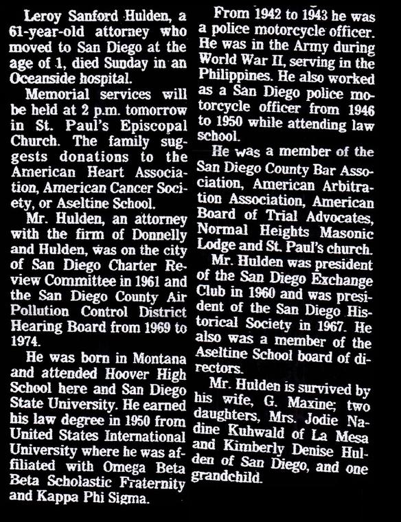 MOTORCYCLE OFFICER LEROY S. HULDEN