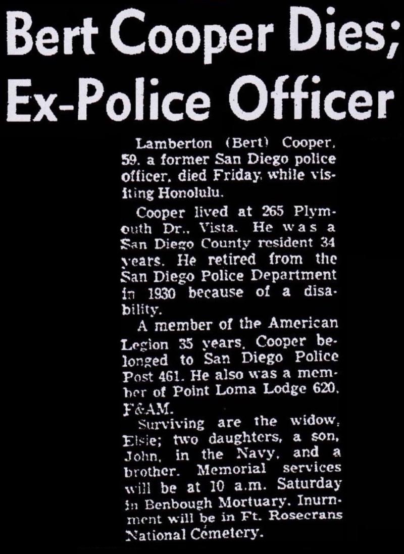 MOTORCYCLE OFFICER LAMBERTON "BERT" COOPER