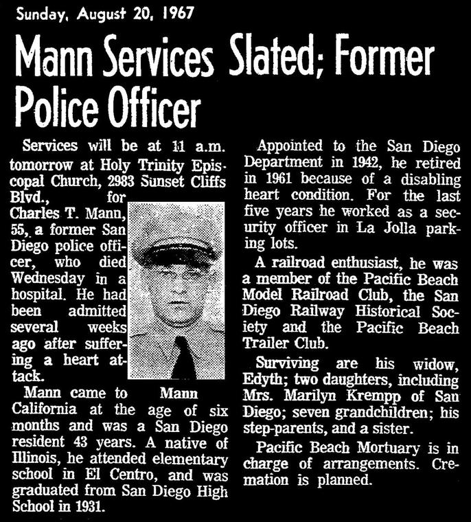 Basic information is provided as a courtesy and is obtained from a variety of sources including public data, museum files and or other mediums. While the San Diego Police Historical Association strives for accuracy, there can be issues beyond our control which renders us unable to attest to the veracity of what is presented. More specific information may be available if research is conducted. Research is done at a cost of $50 per hour with no assurances of the outcome. For additional information please contact us.